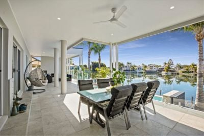 This modern luxury residence is set within the prestigious Moorings enclave of Clear Island Waters, large 907sqm block, with 25 metres of wide water frontage captures serene views from every angle and offers an unparalleled blend of space, style, and sophistication. Tucked away in a quiet cul-de-sac, the home is thoughtfully designed for modern family living, enhanced by exquisite detailing and seamless indoor–outdoor flow.