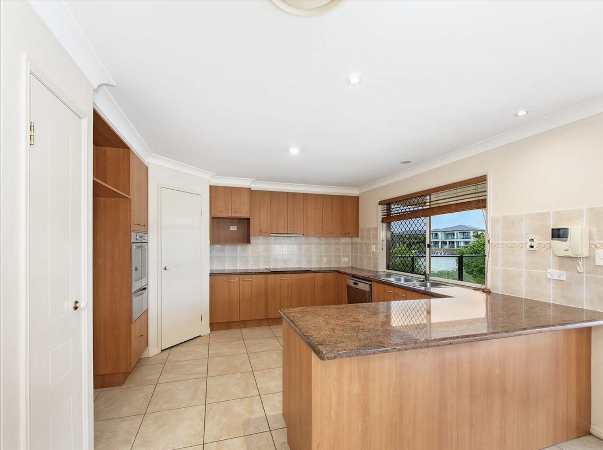 - Modern kitchen with walk-in pantry, granite benches, and stainless steel appliances