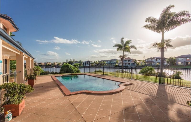 This expansive home boasts 5 bedrooms, 3 bathrooms, four or five living areas. The super king-size master bedroom is a sanctuary with its ensuite and walk-in robe, complemented by a bay window offering breathtaking views of the golden sunset over the serene water. From the media room balcony to the 12m long lap pool with hinterland vistas, every corner of this home is designed for relaxation and enjoyment. Parking is ample with plenty of off-street spaces, including two internal access lockup garages with remote controllers and additional parking for caravans or small trailers. The property is situated within a secured gated community in Oyster Cove, providing both tranquility and convenience.