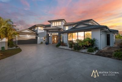 Nestled within the prestigious gated community of Oyster Cove, this architecturally designed grand residence spans an immense 689 square metres and is situated on a vast 1,399m² fan-shaped plot. A stone's throw away from Hope Island and Sanctuary Cove golf communities.